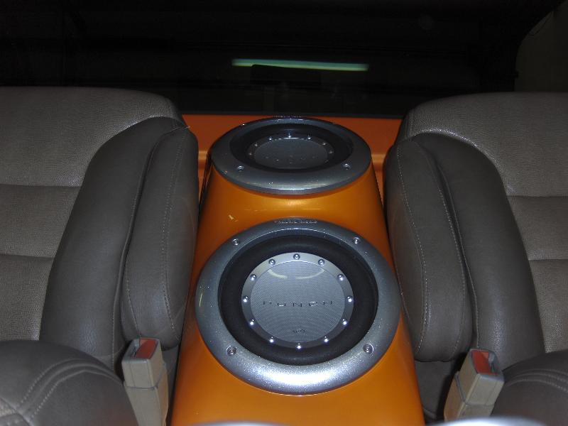Alpine indash dvd, jl 330/4, rockford 6 1/2 components in glassed door pods, 2 8in RF subs in glassed center console