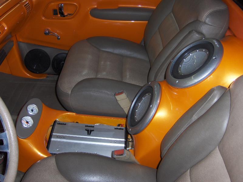 fully smoothed and painted, leather seats w/ boa centers, BAD gunslinger wheel. glassed center sub box and amp rack is beging built.