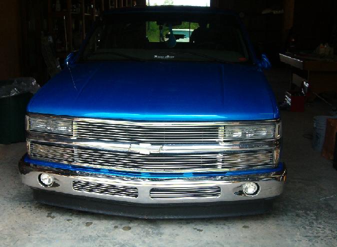 Leds > Euro Corners > Strobes > Billet Antenna, Bowtie, Step Plates > Phantom Grille > Fiberglass Roll Pan > Shaved Doors, Gas Door, Tailgate, Stake Pockets, Taillights, 3rd Brake Light > Chrome Front Split Billet (w/fog lights) Bumper > HoK Paint > Fuel Cell > Cervini's SS Hood > Spray in Color Matched Bedliner > Smooth Wiper Cowl > Dual Signal Electric Mirrors