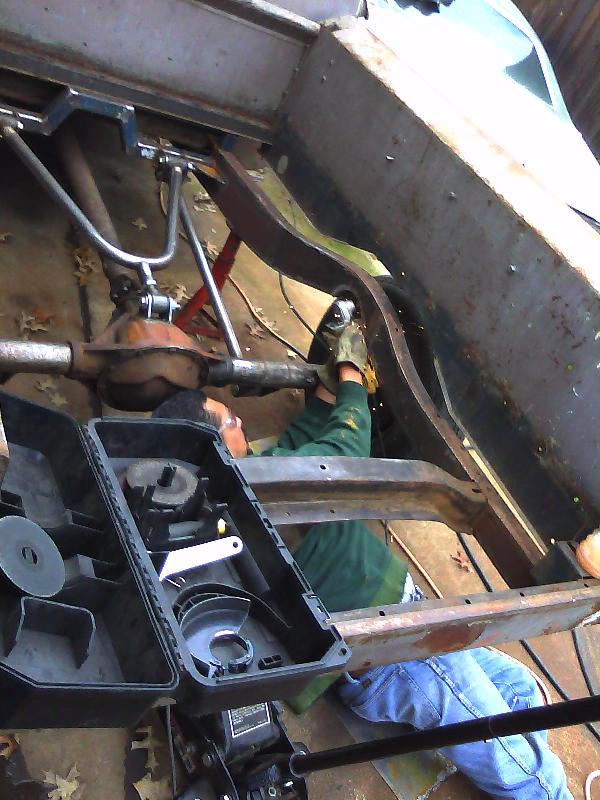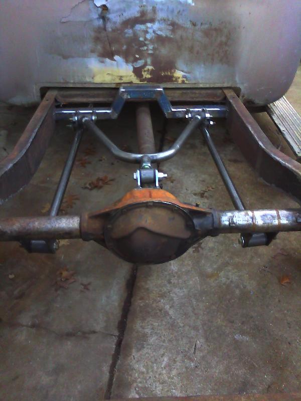 Fully boxed in frame!(Up Frnt)leafs, 63 corvette disc brake setup for now.(Out Back)four link wish bone setup, mini notched, w/a camero rearend.