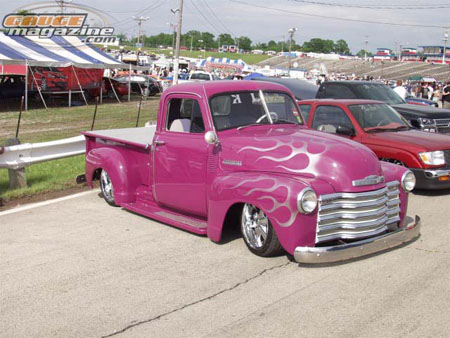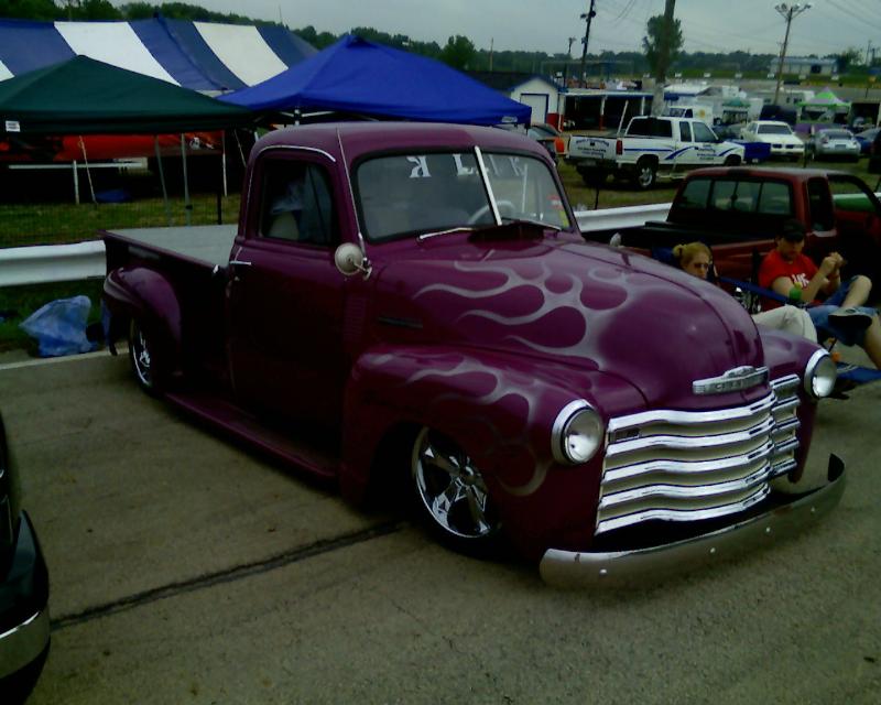 Purple w/ silver flames, chrome grille shaved tailgate