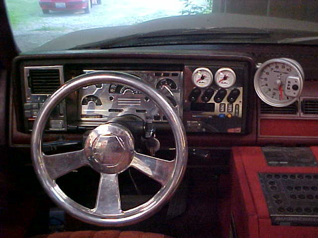 shaved door handles, shaved antenna base in fender, interior color change and new fabric. engine plans; rebuild motor, polished aluminum intake, ported & polished aluminum heads, new valve train, new cam, supercharger, more horespower! rebuild trans and new shift kit. In process of installing 8.5" step notch, hand fabricated frame bridge, 4-link parallel bars, shaved rear frame rails, paint the rear portion of frame, tub the bed and raise center section of bed for frame bridge. Finally Completed on 09.11.05
