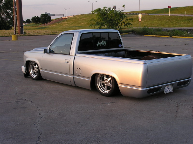 Shave Antennae, Stake holes, roll pan, tailgate handle, taillights, 3rd brake light, billet LP frame(thx Sinner)