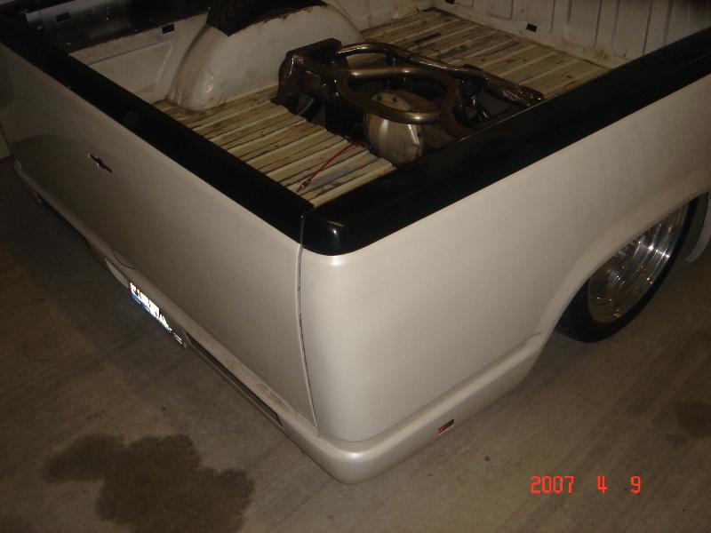 shaved drip rails,door handels,tail lights,roolpan,tail gate latch,stake pockets,mirrors,third brake light,emblims, chopped top 3 inch, toyta peral flat black on top pant,