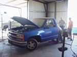 shaved doors, cab seems, gas door, tailights, tailgate, antanna, stake pockets, upper body line solid roll pan, tailgate welded shut clear LED's top of tailgate, tubbed rear fenders, notch cover, panted house of kolor true blue pearl