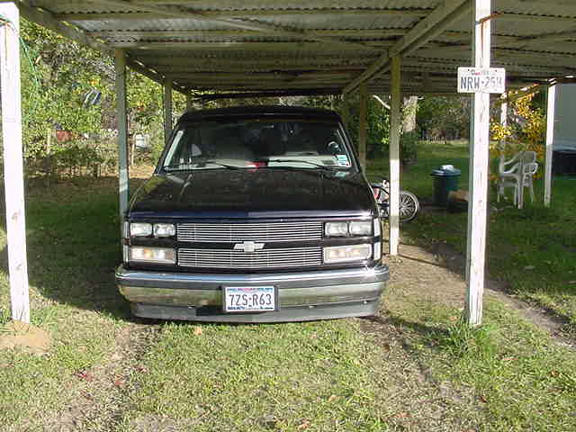 In process:ppg black w/blue pearl HOK candyapple red,ppg silver graphics. Fully shaved.Either escalade front clip or yukon front clip.Smoothed out bed floor