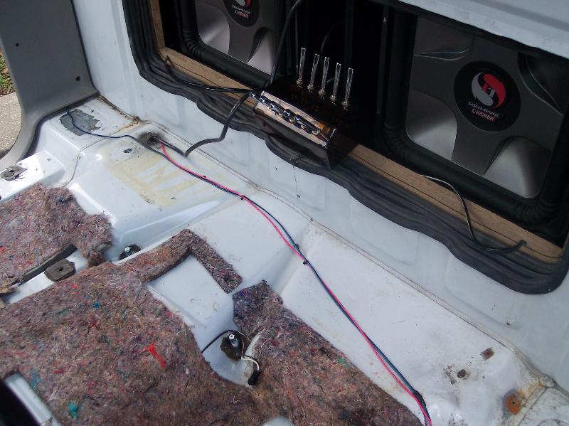 1200.1 kicker amp pushin 2 15" L7's in a cut thru