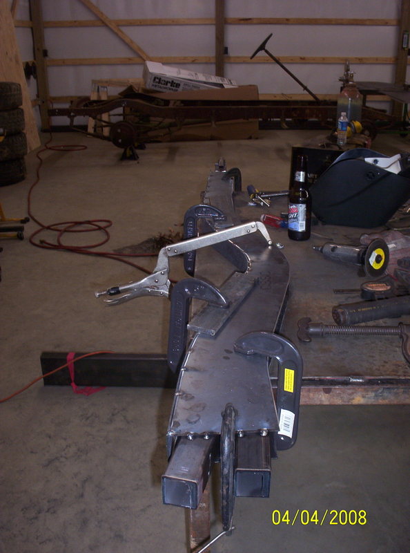 Front and rear frame rails tacked together.