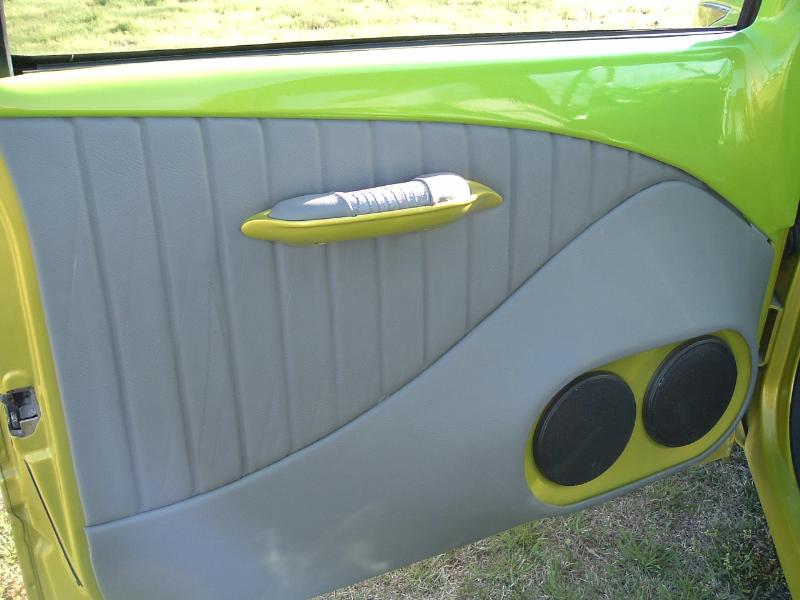 teladaga steering wheel, chrome column kit, chrome flamed mirror and pedals, gray leather,SWADE and alligator seats, smooth dash with dekota digital gauges inset and centered behind a covered screen (hidden) until turned on