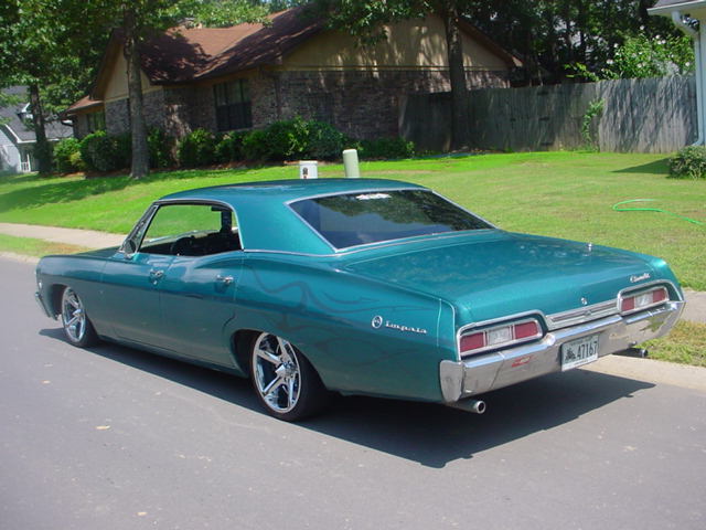 PPG Blue-green Teal Poly prizmatique and ghost flames on rear. Much thanks to Mr. Gale White of Fusion of Tricks Custom Body and Paint. Custom window tint by Mr. Billy Pierce of Russvegas.
