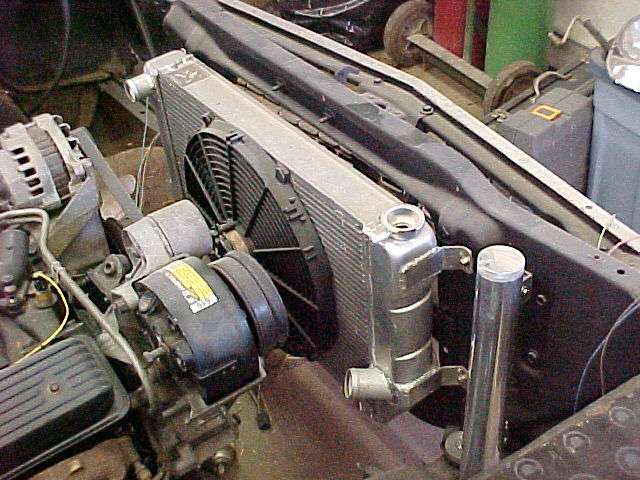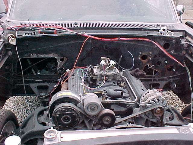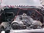 Fuel injected 454, all march pulleys and brackets, flamed billet valve covers, chrome alt., Soon to be twin supercharged, camed, edelbrock intake, milodon high volume oil pan, high volume oil pump. 6 speed trans out of 97 camaro, custom built bellhousing,