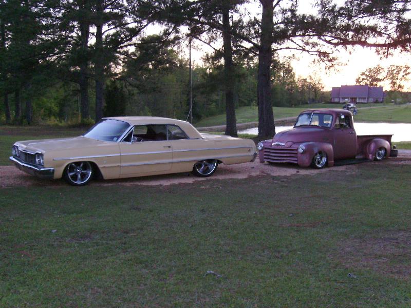 Slam Specialties HS-72's up front, RS-72's out back, SFKUSTOMS.COM brackets, Viair 380, 4 SMC 3/8" valves, 5 Gal. tank, 1/2" line, Parker fittings, 2 switches.