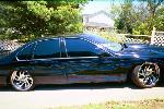 Blue Tribal Flames, House of Kolor Ice pearl, Marblizer, tiny skulls in flames, Shaved Taillights! Shaved antenna, 20 inch KMC Helions, diamond clear corners