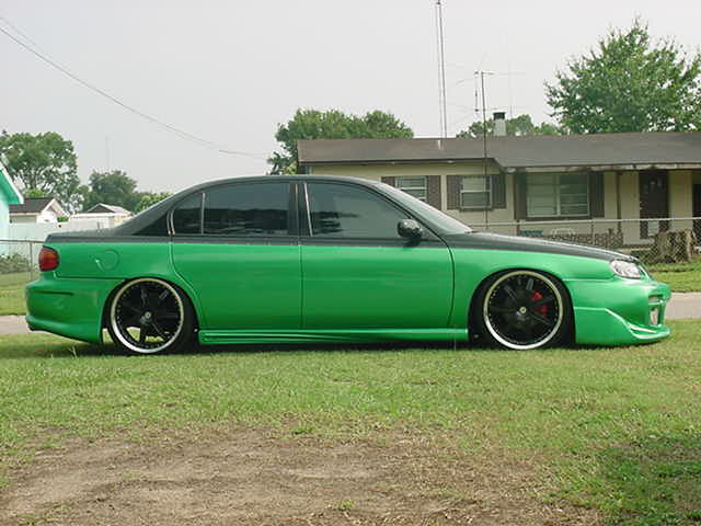 Andy's Auto Sport Cyber Front, Dragon Z side skirts and rear bumber, Custom made billet grill, Andy's Auto Sport mesh grill inserts,Pro Car Wear tail lights,Street Glow neon kit,shaved door handles body side moldings,and antena, custom House of Colors two tone paint job