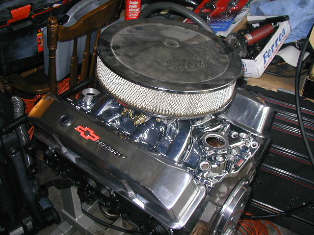 305 Small Block, Lunati Cam and lifters, stage 1 heads, performer intake, 650cfm carb, polished headers, custom h pipe exhaust. Serpatine belt, electric fans, billet everything.