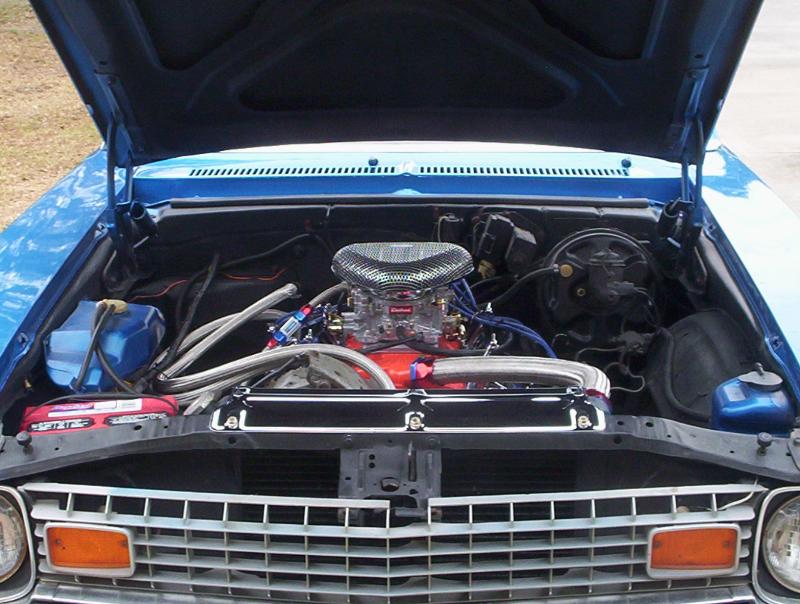 350 four bolt main, +.060 over, mild cam, chromed out, headers, electric fan, HEI w/ Accel wires, edlebrock 600 carb with edlebrock airfilter