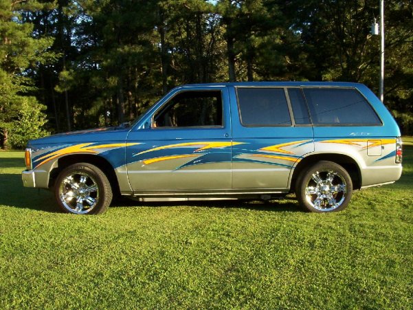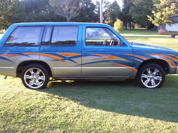 metallic iridescent blue, " " silver and orange.....airbrushed