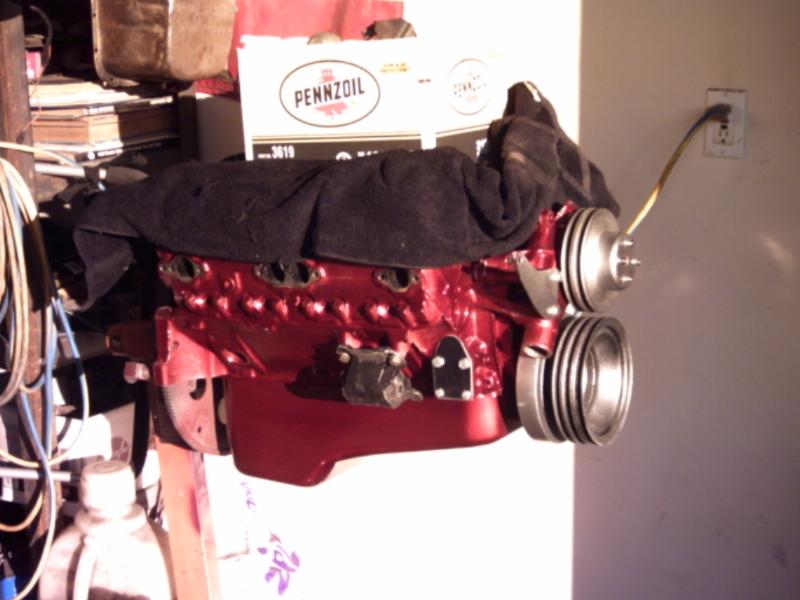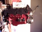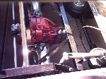 Crate 350 with 700r4 tranny. lokar shifter. some dress up stuff. Pete Jackson gear drive. Holley fuel pressure regulator. Edelbrock Aluminum Intake. Ceramic Coated Headers, 2 1/2" exhaust with Flowmasters. Engine block and transmssion painted candy red. Billet valve covers painted silver and candy red to match paint scheme. American Autowire wiring harness. Lokar Throttle Cable, Kickdown Cable, Engine Dipstick and Throttle Cable Mounting Bracket w/Return Springs. Lokar Speedometer Cable. MBM Master, and MBM 7" Dual Diaphram Booster. All stainless brake line. Billet Specialties Overflow Tank. Billet Wire Looms. All paint work done by Donny Schreiner at MaxxMuscle Custom Cycle Painting.
