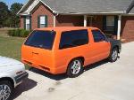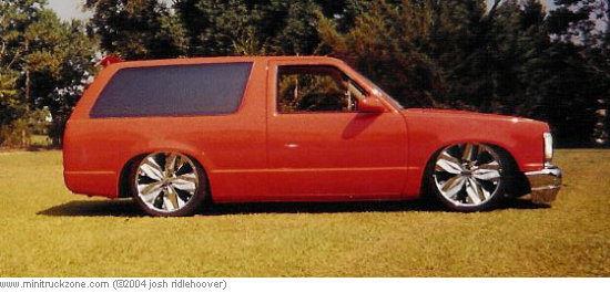 shaved doors roll pan phantom grille!!! supra taillights, shaved body line,roof rack, welded tailgate shut, blah blah blah!! wuz in a wreck dont have the pics from when it wuz orange just the in between and rimer pics lost the before!!!