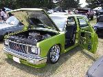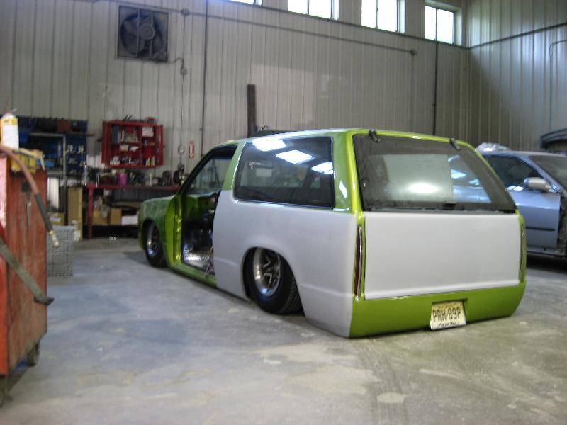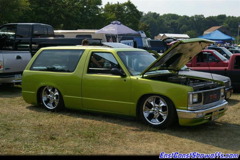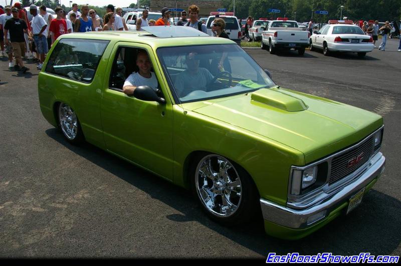 shaved: spare tire rack, handles, roof rack, body lines, emblems, roof seams, wiper cowl. Caddilac tail lights, 2nd gen s10 roll pan with 2nd gen rear s10 bedsides, suicide doors, shaker hood scoop, metal rocker extensions, toyota bumper, sunroof, all clear glass, much more but i forget...