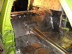 55 chevy dash, bench seat with tuck and roll, chrome steering wheel, autometer artic white guages, complete from front to back bead rolled floor hand built, for a traditional body drop, with only losing 3 inches of head room