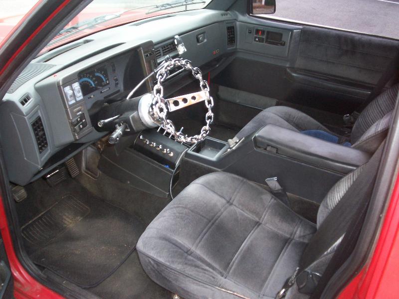 clean black and grey, chain steering wheel, stock shifter and tilt knob from my olds