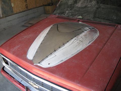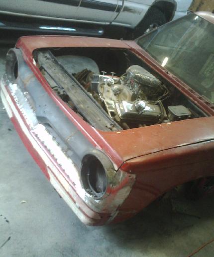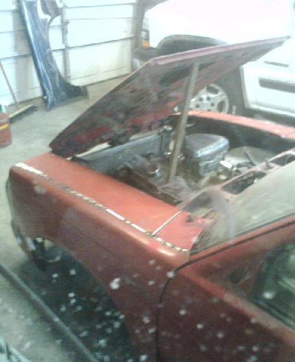 56 ford grill shorten 6" an short front brumper, stock outer fenders for the inner fenders, an shaved azz end
