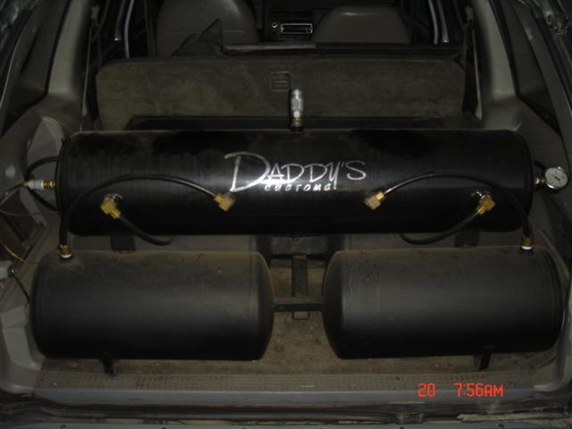 3/4 valves up front contitec bags,1/2 in the rear2 link in the rear w/ panhard bar