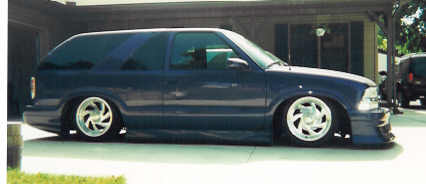 Xenon bumper cover, Stillen side and rear ground effects, Front end conversion from '95 to '00, sport mirrors, shaved roof rack, shaved tailgate