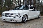 tweed and ostrich interior, new sub box, shave and mold front of bed, bravada front bumper, shaved antena- 3rd break light- hood pissers, SD.com front kit, an SD.com 5 link, budnik wheels