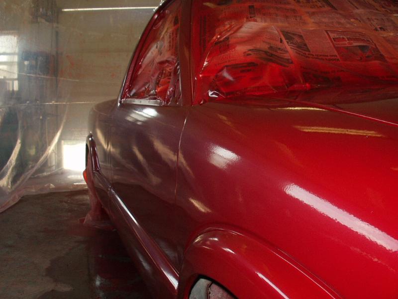 Sprayed dash and doors, and every other piece blaze red, custom headliner and visors, zebra type print.