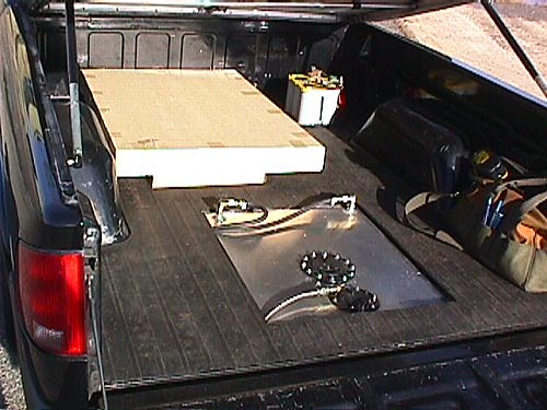 1994 S-10 SS trim with 97 Sonoma grill; 00 Envoy bumper cover; billet grill insert; shaved tailgate; molded Sir Micheals pan; Checkmate FX Soft hinged cover; SS mirrors; PIAA foglights; 20gal fuel cell sunk into bed floor; Optima yellow top in the bed