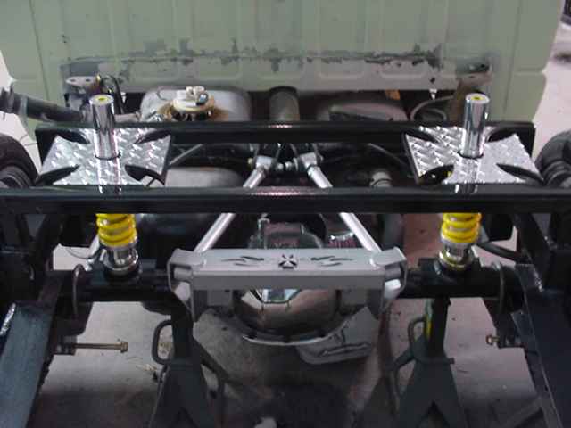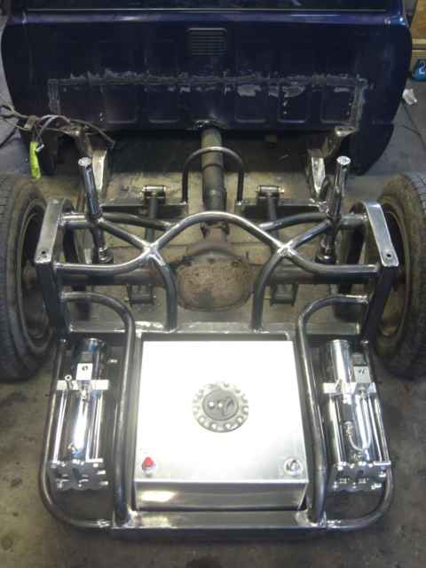 BodyDropped 4", 2 pump 2 dump prohopper hydraulic setup, all chrome pumps and dump bodies, all chrome fittings, 4 Stinger Dry Cell Deep Cycle batteries, all platinum connectors from stinger. Custom Made 4 link, maltese cross bridge plates, 6inch cylinders in front, 10inch in the back, Smoothed frame also in primer now, Frame is now painted all up ready to go.
