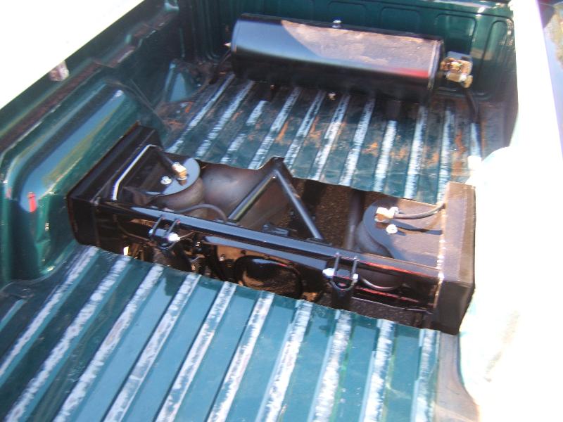 Sd 3-link, firestone bags over axle. 10 switch box. 8.5 gallon tank, 8 3/8" valves, dual needle gauges. Viair 450 compressor. www.crazytalkcustoms.com