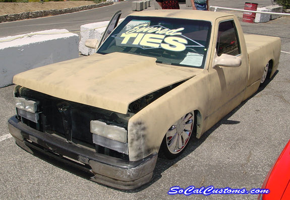 shaved,door handles,key cylinders,body lines,cowl,tailgate,tailgate handle,gas door,rear cab wall,ft bed wall,antanna,cab seams,and on and on cowl hood, body dropped to the doors,capped bed ,toyota 4 runner bumper over 30 mods total.
