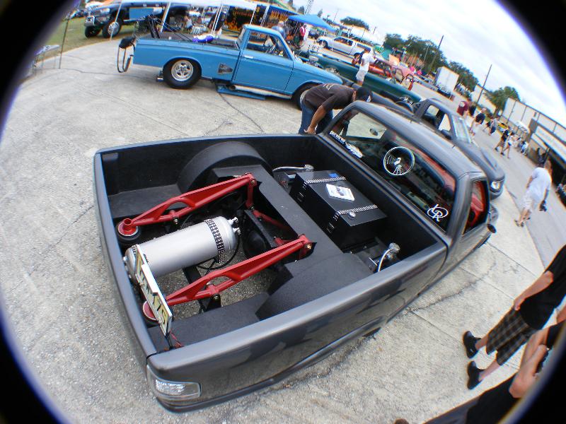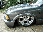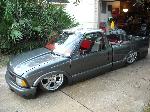 Shaved, and sprayed Dodge Dakota RT Gun Metal Grey. Tailgate has been cut and shaped to show the rear bag setup through the gate(done over 2 years ago) Bed is smothed out and houses the Seriously Insane Full cell and to Viairs