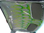Smoothed and Painted Plastics With Some Murals, Custom Center Console and Shifter, FiberGlassed HeadLiner, Trenz RearView, and Colorado Customs Steering Wheel.
