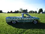 PPG Sparkle Aluminum with a Prizmatic Flake, Flamboyance Yellow and Radiance Green flames, Outlined in a Bright and Blod Blue, and Old Skool Pin Striping. Shaved Door Handles, Tail Gate Handle, Cab Seams, Bed Seams, Gas Door, Antenna, Hood Squirters, 3rd Break Light, 96 Cadillac DeVille Tail Lights, Molded Sir Michaels Roll Pan, Custom Wheel Tubs, and Rhino Lining Spray on Bed Liner.