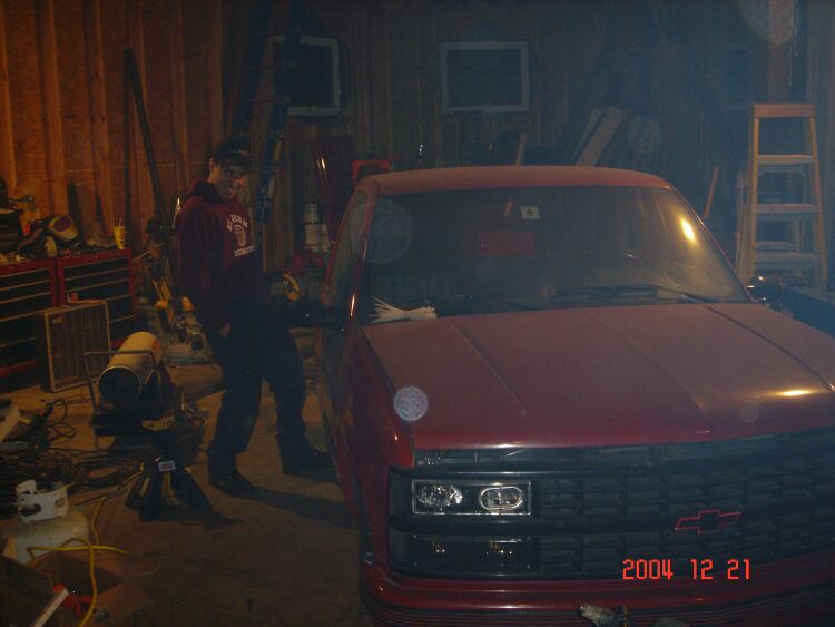 semi stock floor body dropped 5 in. with a stock hood shaved squirters antenna fuel door, tailgate handle, and third brake light.