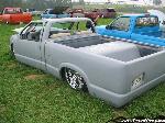 Body Dropped, Chop Top, Fully Shaved (door handles, tailgate skin, third brake light, rollpan, etc), Suicide Doors, GMC front end