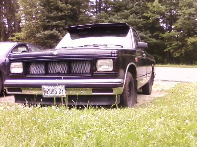 Painted flat black, Custom made grille. Painted front end black, Tinted tails, markers, and corners. Visor. Monster M on hood (with white primer)The front bumper is now the only chrome or shine on the truck.