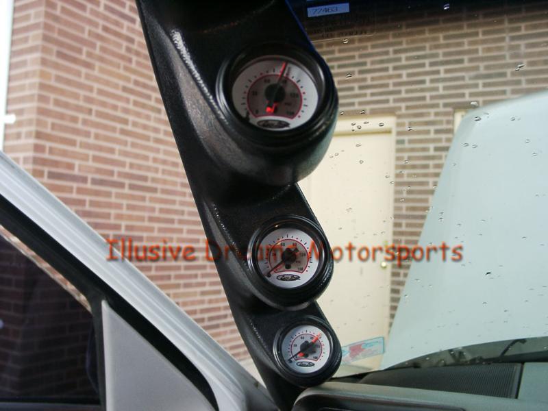 Grey/Black Racing Seats, Billet AC Knobs, Billet Flamed Mirror, Triple Gauge A Pillar Pod for AP Gauges
