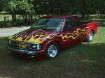 shaved taillights and emblems,corvette C-5 style rollpan and tailgate,clear corners,chrome antenna,flame paint done backyard style,painted wipers