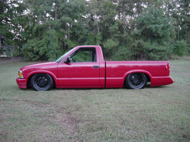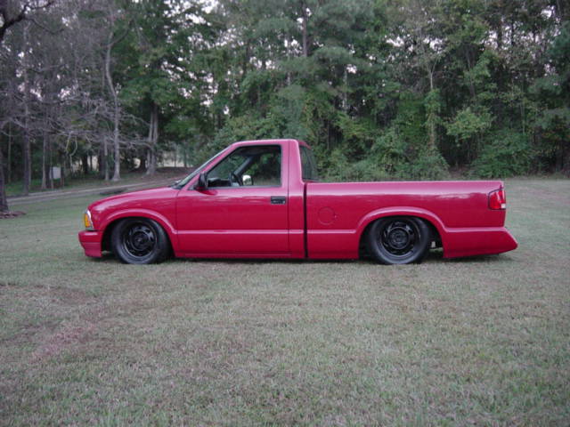 2 inch dropped spindles, bagged front, mono-leaf back, 4 inch angled blocks, airshock, 2 5 gallon tanks, 2 viair 450 comps, and 3/8 smc valves.