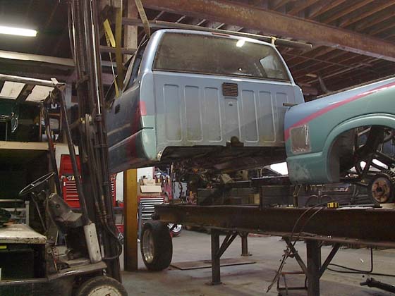5-1/4" bodydrop to the doors. Cab moved back 1". Tailgate/rollpan combo. Shaved gas door. Bed is completely rebuilt, only reused outer bed quarters.