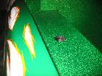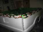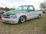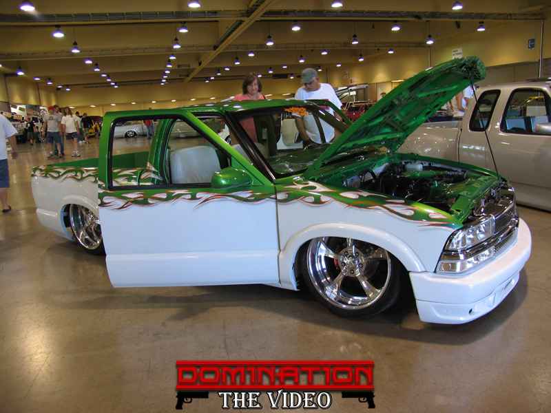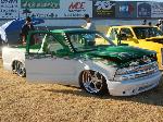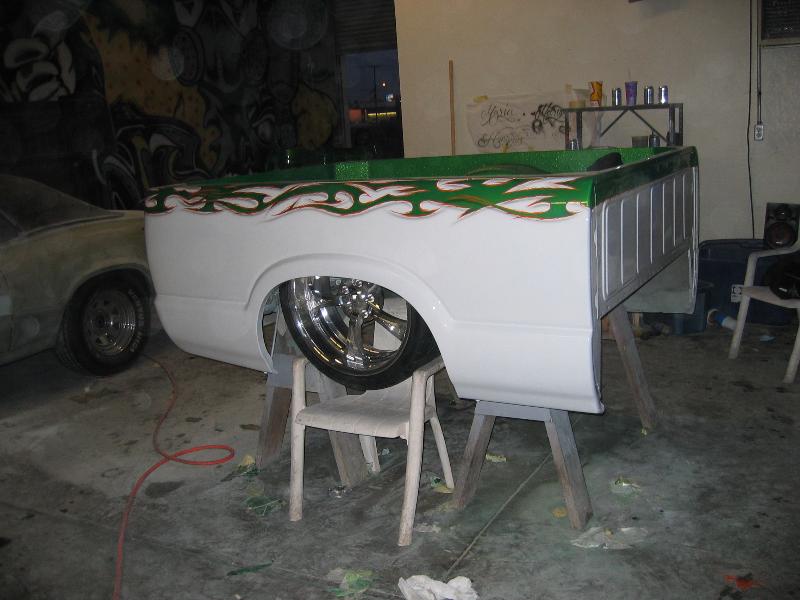 DUPONT HOT HUES PAINT (MIDORI SOUR GREEN OVER WHITE. WITH ORANGE PIN. FULLY SHAVED CAB. SHAVED ANTENNA SHAVED REAR END WITH KADEEZ. SHEET METAL BED WITH HOT HUES TINT IN THE LINE-X. FLUSH MOUNTED CHOPPER GAS CAP IN BED. CLEAR HEADLAMPS WITH CLEAR CORNERS. SS SPEED GRILL, SS MIRRORS, SS VALANCE. GOODMARK STEEL COWL HOOD.