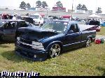 shaved door handles, and tailgate handle, sir michaels rollpan, cervinis ss hood, all painted back factory blue with pearl white gost flames full skin shaved tail lamps shaved tailgate shaved gas cap supra taillights