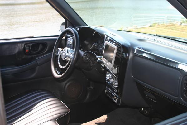 grant heritage series billet steering wheel, chop down bench seat pleated with black vinyl, trenz billet dash kit and FBI knobs, kaik grab bar