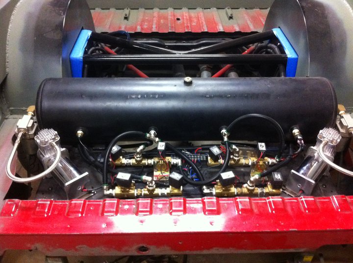 Firestone Bags with 4 1/2 SMC Valves and 4 3/8 SMC Valves. 4 Link with bags behind the rear end.