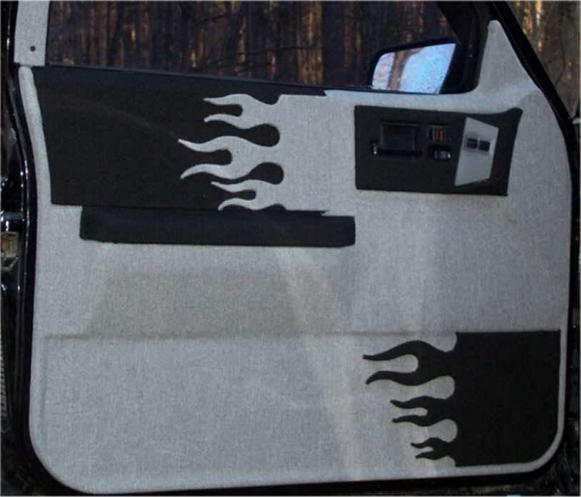 Grey & black tweed with flames